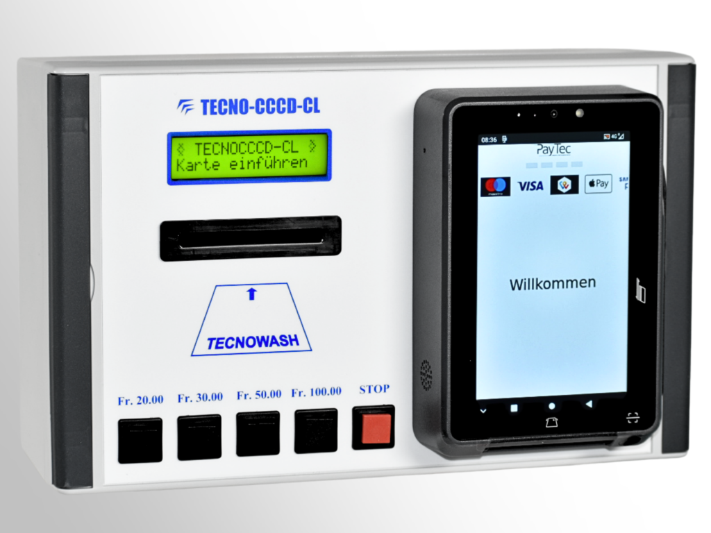 TECNO-CCCD-CL. L’utilisateur peut recharger le montant souhaité à cette station de recharge en utilisant sa carte de crédit/débit, Twint, Apple Pay, Google Pay, Samsung Pay de manière autonome et à tout moment. (Cliquez sur la photo pour plus d’informations)
