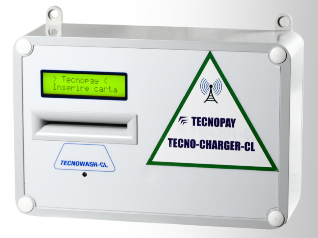 TECNOPAY. Avec ce chargeur équipé d’un modem intégré, il est possible de recharger les cartes de plusieurs buanderies appartenant à la même administration. L’appareil de recharge doit être fixé au mur dans une zone commune pour permettre la recharge à tous les locataires. Tecnofutura SA s’occupe de la gestion complète des recharges. (Cliquez sur la photo pour plus d’informations)