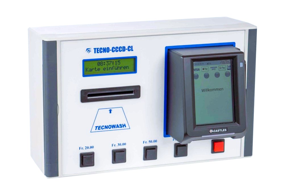 TECNOPAY. Con questo caricatore dotato di modem integrato, si possono ricaricare le carte di più lavanderie appartenenti alla stessa amministrazione. L’apparecchio di ricarica va fissato a muro in una zona comune per permettere la ricarica a tutti gli inquilini. Tecnofutura SA si occupa della gestione completa delle ricariche. (click su foto per maggiori informazioni)